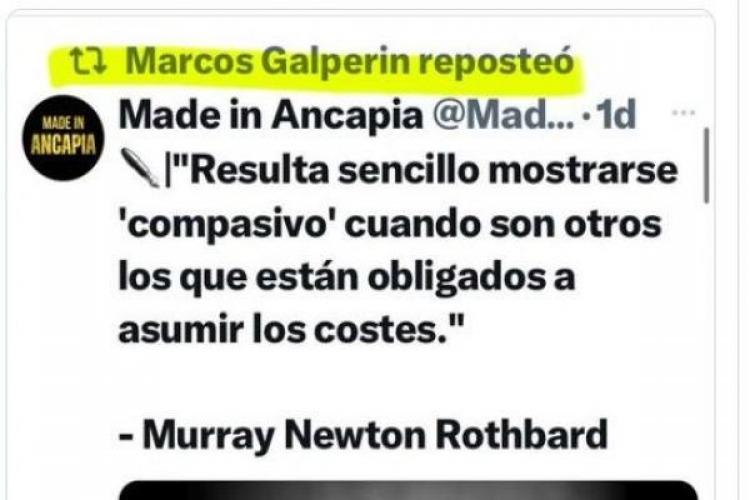 Aparentemente, de acuerdo a LPO, la medida no ha sido bien recibida por Marcos Galperín, quien, a través de un mensaje irónico en sus redes sociales, dejó claro su descontento. Citando al economista libertario Murray Rothbard, cercano a la ideología del gobierno de Milei, Galperín expresó: