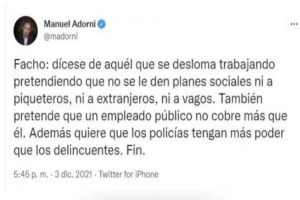 Adorni sigue dando que hablar. Si uno revisa su archivo puede hacer dulce. El uso del verbo “deslomar” volvió a instalar el debate sobre el doble discurso del funcionario y sus antecedentes en redes sociales.