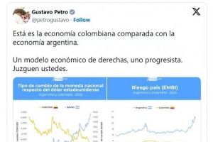 El presidente colombiano comparó en redes la performance financiera de su país con la de la Argentina y apuntó directo al credo libertario. “Está es la economía colombiana comparada con la economía argentina. Un modelo económico de derechas, uno progresista. Juzguen ustedes”, escribió al difundir dos gráficos de CELAG.