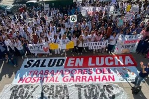 En el marco de un paro de 48 horas, trabajadores del hospital pediátrico marchan desde el Obelisco hacia Plaza de Mayo para exigir respuestas frente a la crisis sanitaria. Denuncian más de 200 renuncias por bajos salarios y el desfinanciamiento deliberado del Estado.