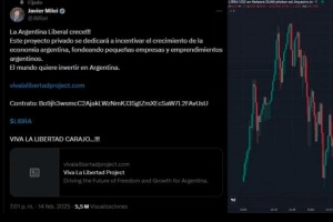 La polémica se desató después de que Milei compartiera un mensaje que decía: "La Argentina Liberal sigue creciendo!!! Este proyecto privado tiene como objetivo promover el desarrollo de la economía argentina, financiando pequeñas empresas y emprendimientos locales. El mundo quiere invertir en Argentina".