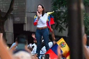 A pesar de que la movilización inicialmente no mostraba gran concurrencia debido al despliegue represivo del gobierno, Machado había logrado congregar a miles de personas, quienes la recibieron con gritos de “Libertad” y “Edmundo presidente”.